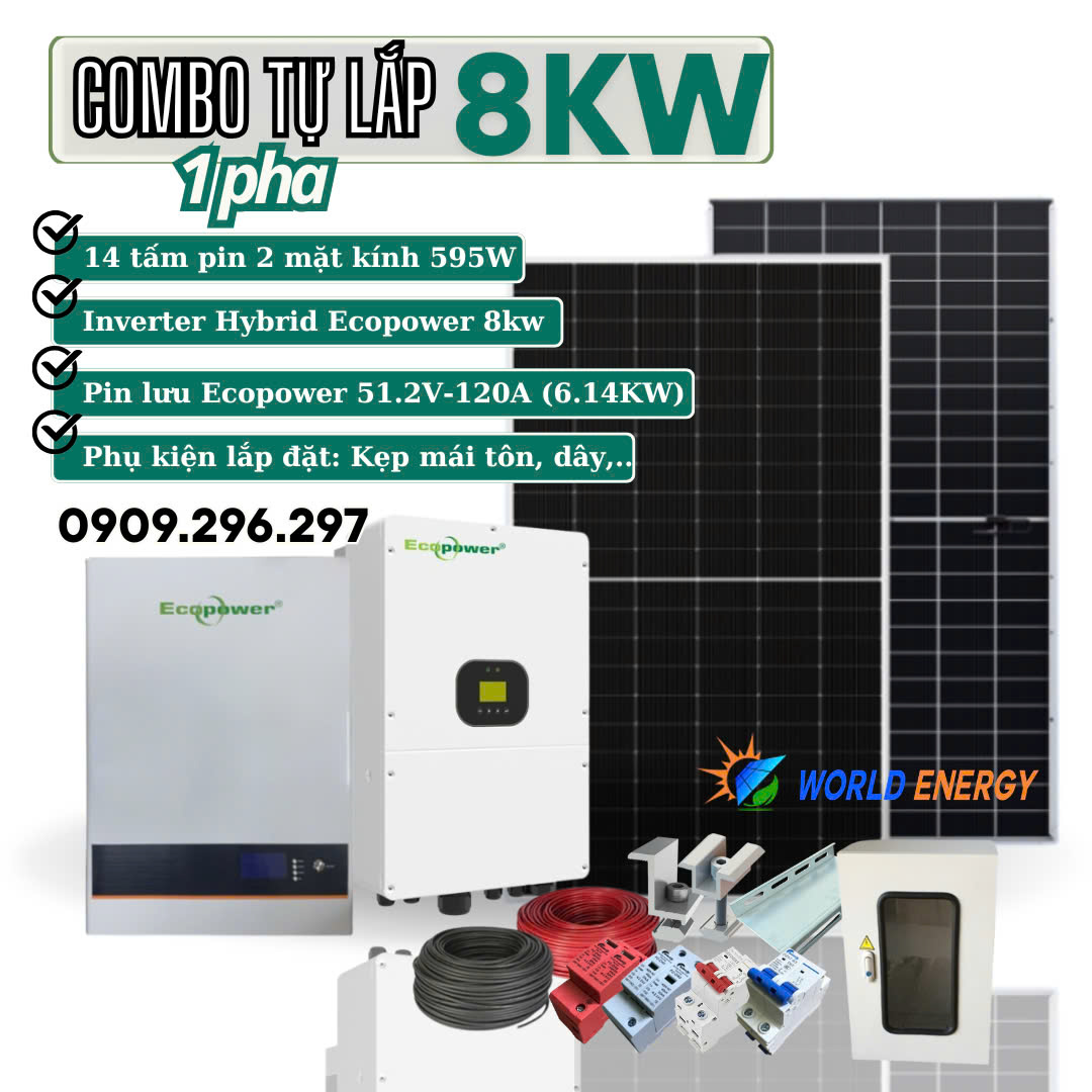 - Bộ biến tần lưu trữ (Hybrid) Ecopower 12KW: 1 bộ